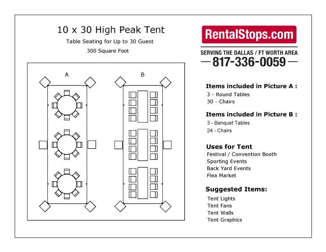 * Please call us with any questions about our 10 foot x 30 foot hybrid marquee tent in Dallas, Fort Worth, Arlington, Grand Prairie & DFW Metro Area.