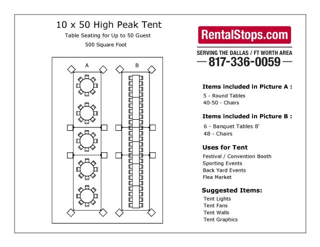 * Please call us with any questions about our 10 foot x 50 foot marquee tent in Dallas, Fort Worth, Arlington, Grand Prairie & DFW Metro Area.